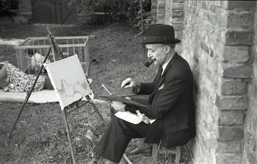 Georges à son chevalet dans le jardin de sa maison de Talence